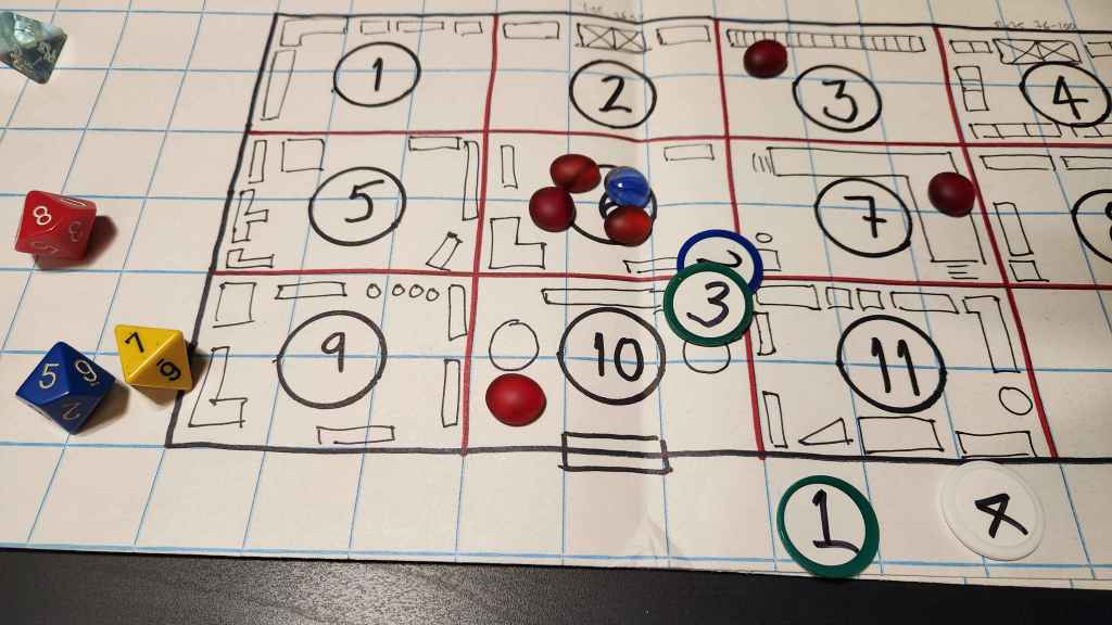 SCENE 01 – The personal assistant to the executive Vice President of Packard Testing is kidnapped and held hostage by several Nexus 8 Replicants. Their demand: 10,000 Chinyen and a shuttle offworld. Four Blade Runners (Kenji Aramaki – Cityspeaker, Piper Beaumont – Analyst, Basher Kerrigan – Enforcer, and Ivan Moneaux – Skimmer) are assigned to the rescue operation. They are to infiltrate the facility and negotiate a deal and failing that, retire the Replicants.