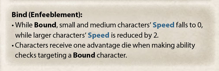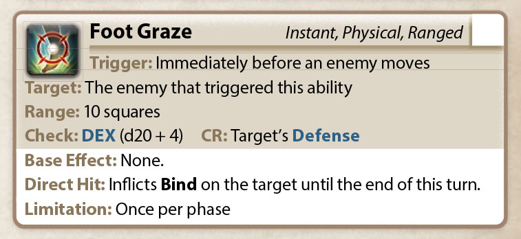 Let’s talk about Foot Graze. This instant ability inflicts the Enfeeblement Bind, hobbling foes regardless of size by drastically reducing their movement speed.