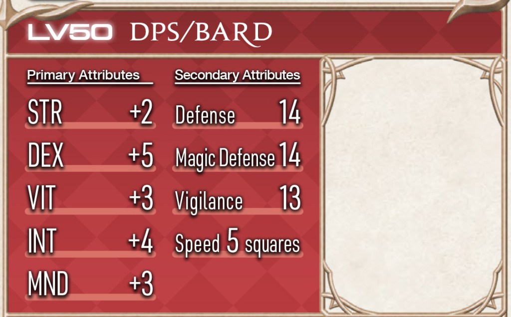 At level 50, the bard gets the same bump that we have seen with the other jobs, with all primary and secondary attributes raising by 1.