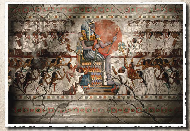 SCENE 04 – With the plans set, the team intends to ride via camel to the Bent Pyramid on this night; only 5 nights remain before the new moon and the undead sorcerer, Senet/al-Shakti/Hussein Malif performs the ritual to resurrect Queen Nitocris and usher in a new wave of terror in the worship of the Black Pharaoh, Nyarlathotep.