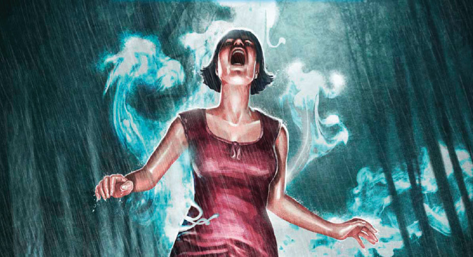 Frozen in place by sheer terror, Lily passes out, her mind snapping like a twig. Rose is frozen in place, a scream stuck in her throat, her legs refusing to obey. Rose frantically tries to move, to scream, anything — but is helpless. The image of Phillipe changes into that of a bedraggled woman with long, scraggly hair wearing a white funeral dress. Her teeth are sharpened points, her filthy fingernails like the claws of some wild beast. Her eyeless face turns towards Rose, her eyes having been gouged out. The woman approaches Rose and lashes out, Rose closing her eyes expecting the same fate … but the woman vanishes.