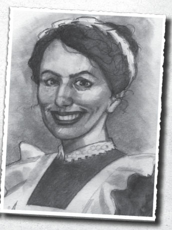 SCENE 08 – As the party walks towards the Lounge, the pocket doors are opened by a young woman wearing a black mourning dress. She has ash around her shoulders, likely from working a fireplace. The young woman introduces herself as Veronica Larkin, daughter of the inn’s owner and lifelong resident of Weyland House.