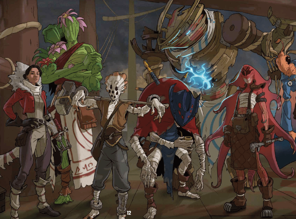Whilst the crew of the Terrapin talks late into the night, Rokko glances at their dock mates, the crew of the Rapacious Demon. Dobasu catches his eye, smiles, and flashes the luminous bone, which glints in the darkness. Rokko thinks things are about to get messy …
