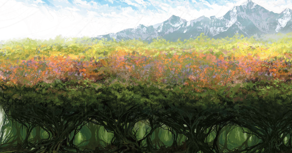 The wizened Ardent evndor tells them that as far as he knows, Blackfields has the only oak trees in the entire Wildsea. Located a couple days’ journey from Newfield Port is a pass that traverses the Crystalline Crags, the cliffs they saw from the Terrapin, in a dense forest. In the middle of this forest is a clearing and in the middle of that clearing stands an ancient, pre-Verdant manor house made from wood. The manor house is pierced by mighty oak trees and from the clearing you can look into the now-empty windows and see furnishings within. It is rumored that vast treasures exist within the manor house, but few have survived venturing inside. In the autumn, the clearing is filled with thousands of acorns for those that are willing to risk fighting the denizens of the forest (and perhaps the manor house) for them.