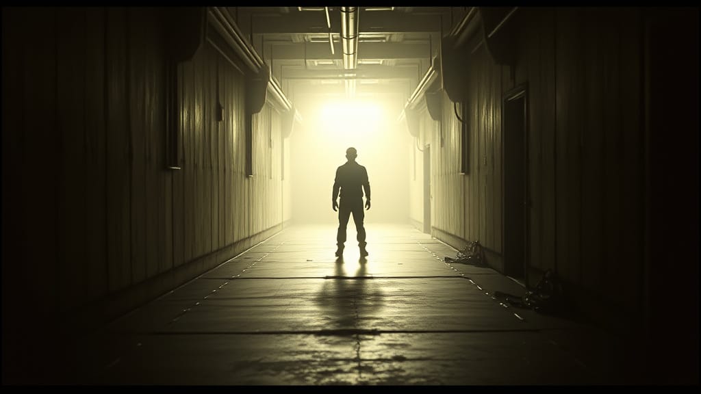 DAY 2, SHIFT 4 – Fenna and Exley go to Sokolov‘s room after taking his key from Evidence. Sokolov’s room is located in a disused, industrial part of the dome and requires traveling down several long, increasingly run-down corridors. Normal residential doors are replaced with industrial bulkheads and the lights become utilitarian, many of them flickering or broken.